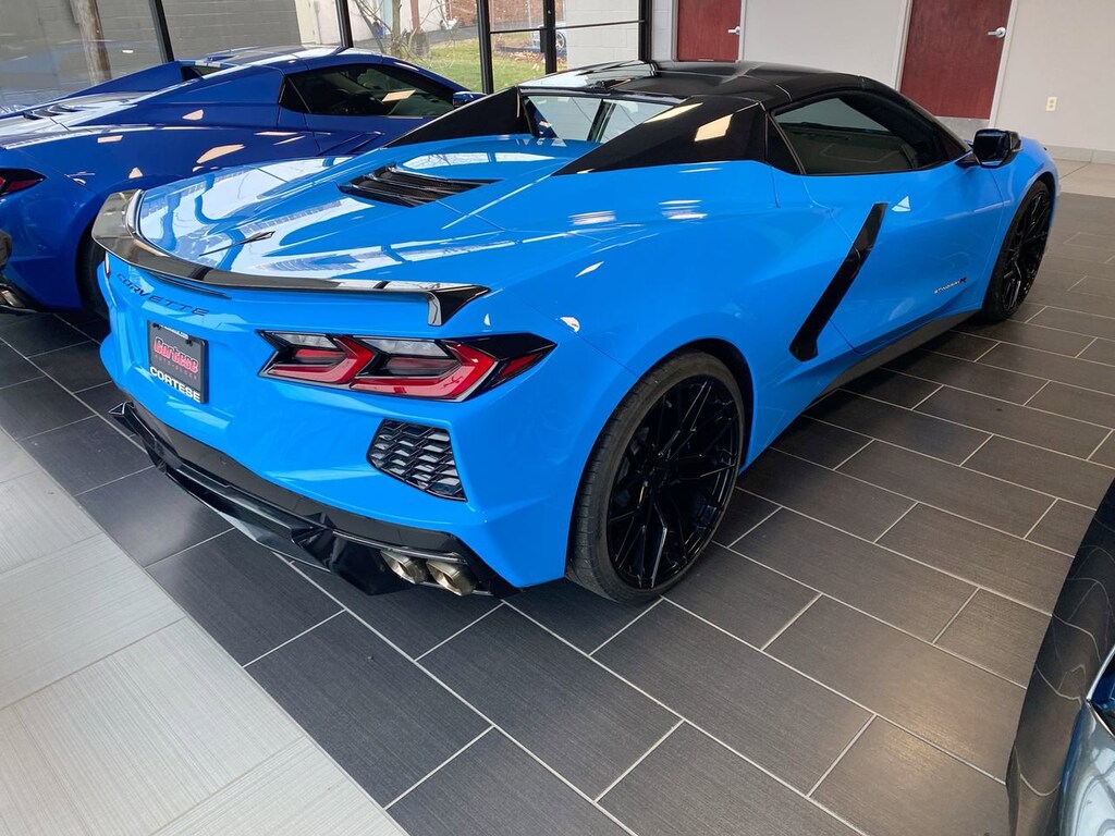 LPO BLACK LUG NUTS Genuine Corvette Accessory,MIRRORS OUTSIDE CARBON FLASH METALLIC-PAINTED,AUDIO SYSTEM CHEVROLET INFOTAINMENT 3 PLUS SYSTEM 8 diagonal HD color touchscreen AM/FM stereo Bluetooth audio streaming for 2 active devices Apple CarPlay and Android Auto capable voice recognition in-vehicle apps cloud connected personalization for select infotainment and vehicle settings. (STD),TIRES 245/35ZR19 FRONT AND 305/30ZR20 REAR BLACKWALL ALL-SEASON PERFORMANCE (STD),SEATS GT1 BUCKET (STD),LPO STINGRAY R APPEARANCE PACKAGE includes (SB7) Corvette Racing Themed Graphics Package with Jake and Stingray R logos and (VWD) Stingray R logo wheel center caps Genuine Corvette Accessory,LPO CONTOURED LINER PROTECTION PACKAGE includes (CAV) contoured cargo area liners with Jake logo and (RIA) all-weather floor lines with Jake logo Genuine Corvette Accessory,CARBON FLASH METALLIC-PAINTED OUTSIDE MIRRORS AND SPOILER (WHEN EQUIPPED) includes (DRG) Carbon Flash Metallic-painted outside mirrors (Also includes Carbon Flash Metallic-painted spoiler when (Z51) Z51 Performance Package or (TVS) low-profile rear spoiler and front splitter is ordered.,TRANSMISSION 8-SPEED DUAL CLUTCH INCLUDES MANUAL AND AUTO MODES (STD),LPO COMPOSITE ROCKER EXTENSIONS BLACK Genuine Corvette Accessory,JET BLACK MULAN LEATHER SEATING SURFACES WITH PERFORATED INSERTS,CONVERTIBLE TOP CARBON FLASH-PAINTED NACELLES AND ROOF,LICENSE PLATE BRACKET FRONT,LPO CONTOURED CARGO AREA LINERS with Jake logo Genuine Corvette Accessory,RAPID BLUE,1LT PREFERRED EQUIPMENT GROUP includes standard equipment,LPO CORVETTE RACING THEMED GRAPHICS PACKAGE with Jake and Stingray R logos Genuine Corvette Accessory,LPO ALL-WEATHER FLOOR LINERS with Jake logo Genuine Corvette Accessory,WHEELS 19 X 8.5 (48.3 CM X 21.6 CM) FRONT AND 20 X 11 (50.8 CM X 27.9 CM) REAR 5-OPEN-SPOKE CARBON FLASH-PAINTED ALUMINUM WITH MACHINED EDGE,SEAT BELT COLOR BLACK (STD),ENGINE 6.2L V8 DI HIGH-OUTPUT Variable Valve Timing (VVT) Active Fuel Management (AFM) (490 hp [365.4 kW] @ 6450 rpm 465 lb-ft of torque [627.8 N-m] @ 5150 rpm) (STD),LOW-PROFILE REAR SPOILER AND FRONT SPLITTER,BATTERY PROTECTION PACKAGE,LPO STINGRAY R LOGO WHEEL CENTER CAPS. Genuine Corvette Accessory,EXHAUST PERFORMANCE aggressive exhaust sound varies with driver mode selected with stainless-steel tips (5 hp and torque increase.,High Output,Locking/Limited Slip Differential,Rear Wheel Drive,Power Steering,ABS,4-Wheel Disc Brakes,Aluminum Wheels,Tires - Front Performance,Tires - Rear Performance,Rear Defrost,Convertible Hardtop,Heated Mirrors,Power Mirror(s),Integrated Turn Signal Mirrors,Intermittent Wipers,AM/FM Stereo,MP3 Capability,Bluetooth Connection,Auxiliary Audio Input,Smart Device Integration,Premium Sound System,HD Radio,Satellite Radio,Requires Subscription,Bluetooth Connection,Smart Device Integration,WiFi Hotspot,Bucket Seats,Power Driver Seat,Power Passenger Seat,Leather Seats,MP3 Capability,Auxiliary Audio Input,Floor Mats,Adjustable Steering Wheel,Leather Steering Wheel,Power Door Locks,Keyless Entry,Power Door Locks,Keyless Start,Power Windows,Remote Engine Start,Cruise Control,Security System,Immobilizer,Keyless Start,Remote Trunk Release,Climate Control,Multi-Zone A/C,A/C,Rear Defrost,Auto-Dimming Rearview Mirror,Back-Up Camera,Driver Vanity Mirror,Passenger Vanity Mirror,Driver Illuminated Vanity Mirror,Passenger Illuminated Visor Mirror,Traction Control,Stability Control,Traction Control,Daytime Running Lights,Back-Up Camera,Rear Parking Aid,Driver Air Bag,Passenger Air Bag,Front Side Air Bag,Passenger Air Bag Sensor,Driver Restriction Features,Telematics,Requires Subscription