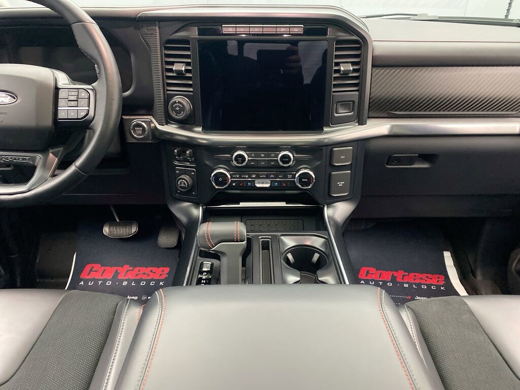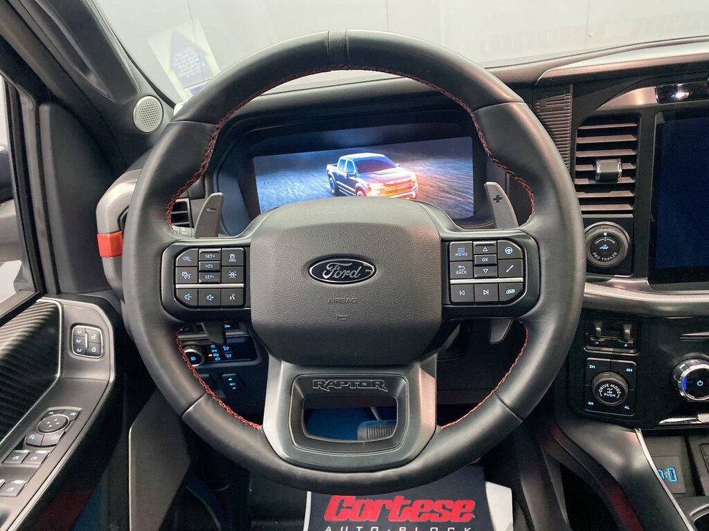 Blue Tooth, Hands Free Streaming, Moonroof/Sunroof, Navigation/GPS, Rear Back Up Camera, 4WD, 14 Speakers, 17 Cast Aluminum Wheels, 4-Wheel Disc Brakes, ABS brakes, Adaptive suspension, Air Conditioning, Alcantara Suede & Leather RECARO Front Seats, Alloy wheels, AM/FM radio: SiriusXM with 360L, Auto High-beam Headlights, Automatic temperature control, Brake assist, Carbon Fiber Interior Appliques, Delay-off headlights, Dual front impact airbags, Dual front side impact airbags, Dual Valve Shocks, Electronic Locking w/4.10 Axle Ratio, Electronic Stability Control, Emergency communication system: SYNC 4 911 Assist, Equipment Group 802A Raptor 37, Front anti-roll bar, Front Center Armrest, Front dual zone A/C, Front fog lights, Front wheel independent suspension, Fully automatic headlights, Heads-Up Display, Heated front seats, Heated rear seats, Lane Departure Warning System, Leather Trim Seats, Low tire pressure warning, Memory seat, Modular Front Bumper, Navigation system: Connected Navigation, Occupant sensing airbag, Overhead airbag, Panic alarm, Passenger door bin, Pedal memory, Power driver seat, Power passenger seat, Power steering, Power windows, Radio data system, Radio: B&O Unleashed Sound System by Bang & Olufsen, Rain sensing wipers, Rear window defroster, Remote keyless entry, Security system, Speed control, Speed-sensing steering, Split folding rear seat, Steering wheel memory, Steering wheel mounted audio controls, SYNC 4 w/Enhanced Voice Recognition, Traction control, Twin Panel Moonroof, Variably intermittent wipers, Ventilated front seats, Wheels: Raptor 37 Unique 17 Cast Aluminum.