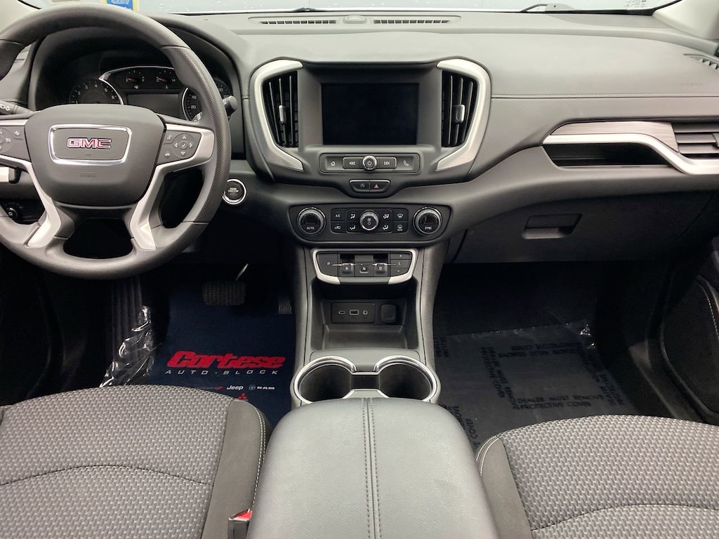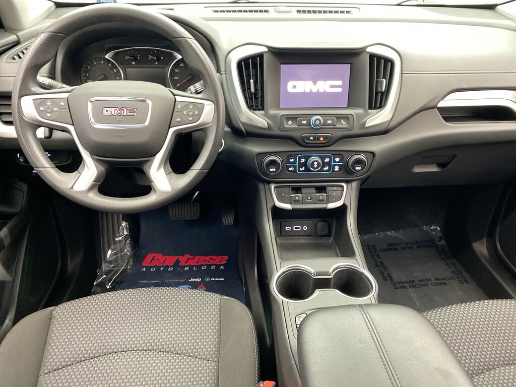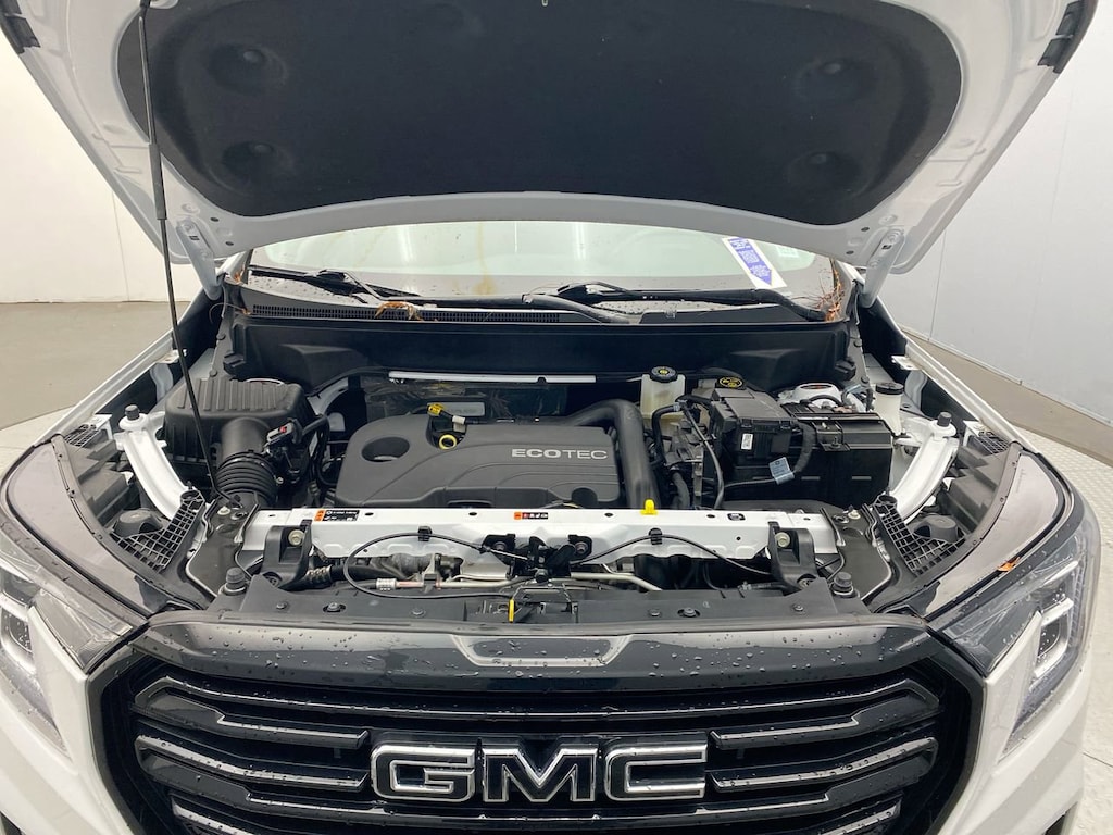 featuring Android Auto and Apple CarPlay capability for compatible phones (STD),SUMMIT WHITE,AXLE 3.47 FINAL DRIVE RATIO,SLE PREFERRED EQUIPMENT GROUP includes standard equipment,SEAT POWER DRIVER LUMBAR CONTROL,LPO INTEGRATED CARGO LINER,SEAT DRIVER 8-WAY POWER WITH 2-WAY POWER LUMBAR,LPO BLACK GMC EMBLEMS FRONT AND REAR,REMOTE START,AIR CONDITIONING DUAL-ZONE AUTOMATIC CLIMATE CONTROL with individual climate settings for driver and right-front passenger,DRIVER CONVENIENCE PACKAGE includes (BTV) Remote Start (CJ2) dual-zone automatic climate control (KA1) driver and front passenger heated seats (AG1) 8-way power driver seat adjuster (AL9) driver power lumbar control and (V2P) roof-mounted luggage rack side rails (Vehicles built prior to November 15 2021 and on or after February 28 2022 through March 13 2022 and after May 1 2022 include driver and front passenger heated seats. Certain vehicles built between November 15 2021 and February 27 2022 and after March 13 2022 through May 1 2022 will be forced to include (00V) Not Equipped with Driver and Front Passenger Heated Seats which removes driver and front passenger heated seats. Vehicles equipped with (00V) Not Equipped with Driver and Front Passenger Heated Seats will be eligible for later dealer retrofit to enable functionality see dealer for details.),LPO FLOOR LINER PACKAGE (Includes (RIA) front and rear row all-weather floor liners LPO and (CAV) integrated cargo liner LPO.,TIRES P235/50R19 ALL-SEASON BLACKWALL,ELEVATION EDITION includes (PJM) 19 gloss black aluminum wheels darkened front grille (V2P) black roof-mounted side rails black GMC center caps with red GMC lettering black exterior accents black mirror caps and black exterior badging,SEATS FRONT BUCKET (STD),SEATS HEATED DRIVER AND FRONT PASSENGER Certain vehicles built between November 15 2021 and February 27 2022 and after March 13 2022 through May 1 2022 will be forced to include (00V) Not Equipped with Driver and Front Passenger Heated Seats which removes driver and front passenger heated seats. See dealer for details or the window label for the features on a specific vehicle. Feature will not function on certain models without later dealer retrofit see dealer for details.),TRANSMISSION 9-SPEED AUTOMATIC 9T45 ELECTRONICALLY-CONTROLLED WITH OVERDRIVE (STD),LICENSE PLATE FRONT MOUNTING PACKAGE (will be forced on orders with ship-to states that require a front license plate),WHEELS 19 X 7.5 (48.3 CM X 19.1 CM) GLOSS BLACK PAINTED ALUMINUM,LUGGAGE RACK SIDE RAILS ROOF-MOUNTED,Lane Departure Warning,Lane Keeping Assist,Front Collision Mitigation,Front Collision Warning,Automatic Highbeams,Turbocharged,Keyless Start,All Wheel Drive,ABS,4-Wheel Disc Brakes,Aluminum Wheels,Tires - Front All-Season,Tires - Rear All-Season,Temporary Spare Tire,Automatic Headlights,Automatic Headlights,Daytime Running Lights,Privacy Glass,Heated Mirrors,Power Mirror(s),AM/FM Stereo,MP3 Capability,Bluetooth Connection,Auxiliary Audio Input,Smart Device Integration,Satellite Radio,Requires Subscription,Bluetooth Connection,WiFi Hotspot,Bluetooth Connection,Smart Device Integration,Bucket Seats,Cloth Seats,Pass-Through Rear Seat,Rear Bench Seat,Floor Mats,Floor Mats,Steering Wheel Audio Controls,Tire Pressure Monitor,Trip Computer,Power Windows,Power Windows,Power Windows,Power Door Locks,Keyless Entry,Power Door Locks,Security System,Cruise Control,Security System,Power Outlet,Auxiliary Audio Input,Climate Control,A/C,Auto-Dimming Rearview Mirror,Automatic Highbeams,Front Collision Mitigation,Front Collision Warning,Traction Control,Stability Control,Front Collision Mitigation,Driver Air Bag,Passenger Air Bag,Front Side Air Bag,Front Head Air Bag,Rear Head Air Bag,Passenger Air Bag Sensor,Back-Up Camera,Telematics,Requires Subscription,Front Collision Warning,Lane Departure Warning,Lane Keeping Assist,Driver Restriction Features,Tire Pressure Monitor
