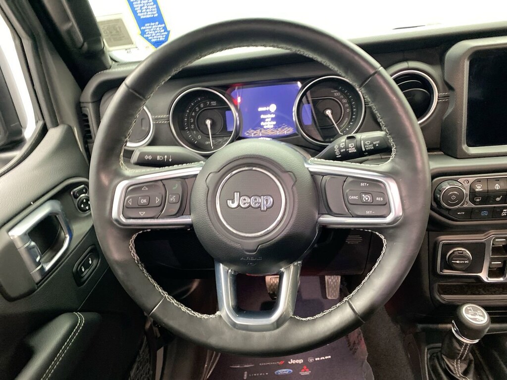 TRANSMISSION: 8-SPEED AUTO 8P75PH PHEV (STD),ENGINE: 2.0L I4 DOHC DI TURBO PHEV (STD),COLD WEATHER GROUP -inc: Heated Steering Wheel Remote Start System Heated Front Seats,STING-GRAY CLEARCOAT,WHEELS: 20 X 8 FULLY PAINTED ALUMINUM (STD),QUICK ORDER PACKAGE 29P -inc: Engine: 2.0L I4 DOHC DI Turbo PHEV Transmission: 8-Speed Auto 8P75PH PHEV,REMOTE START SYSTEM,BODY COLOR 3-PIECE HARD TOP -inc: Freedom Panel Storage Bag Rear Window Defroster Rear Window Wiper/Washer,MOPAR HARDTOP HEADLINER,FRONT LICENSE PLATE BRACKET,BLACK PREMIUM MCKINLEY TRIMMED SEATS,Turbocharged,Four Wheel Drive,Power Steering,ABS,4-Wheel Disc Brakes,Brake Assist,Brake Actuated Limited Slip Differential,Lithium Ion Traction Battery,Aluminum Wheels,Tires - Front Performance,Tires - Rear Performance,Conventional Spare Tire,Tow Hooks,Tow Hooks,Heated Mirrors,Power Mirror(s),Privacy Glass,Intermittent Wipers,Variable Speed Intermittent Wipers,Rollover Protection Bars,Convertible Soft Top,Running Boards/Side Steps,Power Door Locks,Daytime Running Lights,Automatic Headlights,LED Headlights,Fog Lamps,AM/FM Stereo,Navigation System,Satellite Radio,Bluetooth Connection,HD Radio,Requires Subscription,Premium Sound System,MP3 Capability,Steering Wheel Audio Controls,Auxiliary Audio Input,Premium Sound System,Bluetooth Connection,Driver Adjustable Lumbar,Driver Adjustable Lumbar,Pass-Through Rear Seat,Rear Bench Seat,Adjustable Steering Wheel,Trip Computer,Power Windows,WiFi Hotspot,Leather Steering Wheel,Keyless Entry,Power Door Locks,Keyless Start,Keyless Entry,Power Door Locks,Universal Garage Door Opener,Cruise Control,Climate Control,Multi-Zone A/C,A/C,Leather Seats,Bucket Seats,Auto-Dimming Rearview Mirror,Driver Vanity Mirror,Passenger Vanity Mirror,Driver Illuminated Vanity Mirror,Passenger Illuminated Visor Mirror,Floor Mats,Navigation System,Smart Device Integration,Power Windows,Power Door Locks,Trip Computer,Security System,Immobilizer,Traction Control,Stability Control,Traction Control,Front Side Air Bag,Telematics,Requires Subscription,Tire Pressure Monitor,Driver Air Bag,Passenger Air Bag,Passenger Air Bag Sensor,Child Safety Locks,Back-Up Camera
