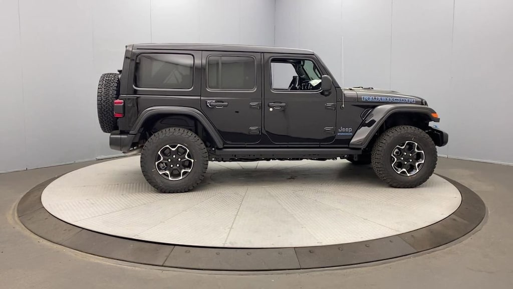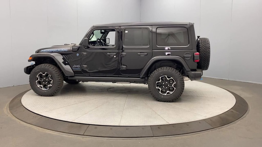 TRANSMISSION: 8-SPEED AUTO 8P75PH PHEV (STD),BLACK LEATHER TRIMMED BUCKET SEATS -inc: Premium Wrapped I/P Bezels Leather Wrapped Park Brake Handle Leather Wrapped Shift Knob Premium Door Trim Panel,QUICK ORDER PACKAGE 29V RUBICON -inc: Engine: 2.0L I4 DOHC DI Turbo PHEV Transmission: 8-Speed Auto 8P75PH PHEV,ENGINE: 2.0L I4 DOHC DI TURBO PHEV (STD),BLACK CLEARCOAT,COLD WEATHER GROUP -inc: Heated Steering Wheel Remote Start System Heated Front Seats,MOPAR ALL-WEATHER FLOOR MATS,TIRES: LT285/70R17C BSW OFF-ROAD (STD),SKY 1-TOUCH POWER TOP -inc: Rear Window Defroster Rear Window Wiper/Washer Removable Rear Quarter Windows Power Top Quarter Window Storage Bag,BODY COLOR RUBICON HIGHLINE FLARE,FRONT LICENSE PLATE BRACKET,Turbocharged,Four Wheel Drive,Locking/Limited Slip Differential,Locking/Limited Slip Differential,Power Steering,ABS,4-Wheel Disc Brakes,Brake Assist,Locking/Limited Slip Differential,Brake Actuated Limited Slip Differential,Lithium Ion Traction Battery,Aluminum Wheels,Tires - Front All-Terrain,Tires - Rear All-Terrain,Conventional Spare Tire,Tow Hooks,Tow Hooks,Heated Mirrors,Power Mirror(s),Privacy Glass,Intermittent Wipers,Variable Speed Intermittent Wipers,Rollover Protection Bars,Power Door Locks,Daytime Running Lights,Automatic Headlights,LED Headlights,Fog Lamps,AM/FM Stereo,Navigation System,Satellite Radio,Bluetooth Connection,HD Radio,Requires Subscription,Premium Sound System,MP3 Capability,Steering Wheel Audio Controls,Auxiliary Audio Input,Premium Sound System,Bluetooth Connection,Driver Adjustable Lumbar,Driver Adjustable Lumbar,Pass-Through Rear Seat,Rear Bench Seat,Adjustable Steering Wheel,Trip Computer,Power Windows,WiFi Hotspot,Keyless Entry,Power Door Locks,Keyless Start,Keyless Entry,Power Door Locks,Universal Garage Door Opener,Cruise Control,Climate Control,Multi-Zone A/C,A/C,Bucket Seats,Auto-Dimming Rearview Mirror,Driver Vanity Mirror,Passenger Vanity Mirror,Driver Illuminated Vanity Mirror,Passenger Illuminated Visor Mirror,Floor Mats,Navigation System,Smart Device Integration,Power Windows,Power Door Locks,Trip Computer,Security System,Immobilizer,Traction Control,Stability Control,Traction Control,Front Side Air Bag,Telematics,Requires Subscription,Tire Pressure Monitor,Driver Air Bag,Passenger Air Bag,Passenger Air Bag Sensor,Child Safety Locks,Back-Up Camera