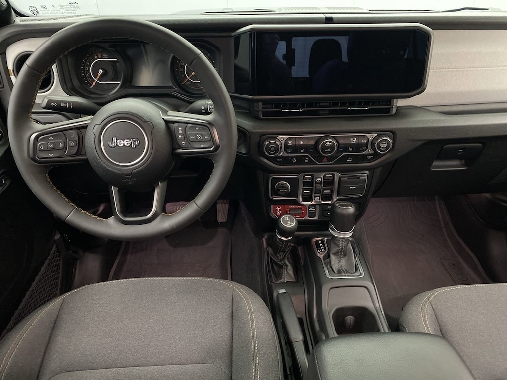 BLACK CLOTH LOW-BACK BUCKET SEATS,MOPAR SPRAY IN BEDLINER,ENGINE: 3.6L V6 24V VVT UPG I W/ESS (STD),BLACK 3-PIECE HARD TOP -inc: Freedom Panel Storage Bag Rear Window Defroster Rear Sliding Window,BLACK CLEARCOAT,TRANSMISSION: 8-SPEED AUTOMATIC (850RE) -inc: Adaptive Cruise Control w/Stop Transmission Skid Plate Selec-Speed Control,CONVENIENCE GROUP -inc: Emergency/Assistance Call Front Door Locks 2-Door Passive Entry Remote Start System Cluster 7.0 TFT Color Display Universal Garage Door Opener Heated Front Seats Air Conditioning w/Auto Temp Control Heated Steering Wheel Corning Gorilla Glass,QUICK ORDER PACKAGE 24W WILLYS -inc: Engine: 3.6L V6 24V VVT UPG I w/ESS Transmission: 8-Speed Automatic (850RE) Speed Sensitive Power Locks LED Taillamps Protection Sill Rails 4-Wheel Drive Decal Black Grille Body Color Fender Flares (2-Piece) Front 1-Touch Down Power Windows Front Heavy Duty Red Accent Shock Absorbers Daytime Running Lamps LED Accents Front LED Fog Lamps LED Premium Reflector Headlamps E-Locker Rear Axle Trailer Hitch Zoom Class IV Receiver Hitch Security Alarm Mold In Color Bumper w/Gloss Black Advanced Brake Assist Heavy Duty Engine Cooling Automatic Headlamps Air Conditioning w/Auto Temp Control Deep Tint Sunscreen Windows Off-Road Plus Mode 240 Amp Alternator Willys Hood Decal Full Speed Forward Collision Warning Plus Rear Heavy Duty Red Accent Shock Absorbers Front Door Locks 2-Door Passive Entry 97 MPH Vehicle Max Speed Calibration Cluster 7.0 TFT Color Display Power Heated Mirrors Enhanced Adaptive Cruise Control Auxiliary Sw,Four Wheel Drive,Power Steering,ABS,4-Wheel Disc Brakes,Brake Actuated Limited Slip Differential,Aluminum Wheels,Tires - Front All-Terrain,Tires - Rear All-Terrain,Conventional Spare Tire,Tow Hooks,Tow Hooks,Intermittent Wipers,Variable Speed Intermittent Wipers,Rollover Protection Bars,Convertible Soft Top,AM/FM Stereo,Satellite Radio,Bluetooth Connection,Requires Subscription,MP3 Capability,Steering Wheel Audio Controls,Auxiliary Audio Input,Satellite Radio,Requires Subscription,Bluetooth Connection,Driver Adjustable Lumbar,Driver Adjustable Lumbar,Pass-Through Rear Seat,Rear Bench Seat,Adjustable Steering Wheel,Trip Computer,Power Windows,Cruise Control,Cloth Seats,Bucket Seats,Floor Mats,Smart Device Integration,WiFi Hotspot,Smart Device Integration,Smart Device Integration,Power Windows,Trip Computer,Immobilizer,Traction Control,Stability Control,Traction Control,Front Side Air Bag,Telematics,Requires Subscription,Tire Pressure Monitor,Driver Air Bag,Passenger Air Bag,Front Head Air Bag,Rear Head Air Bag,Passenger Air Bag Sensor,Child Safety Locks