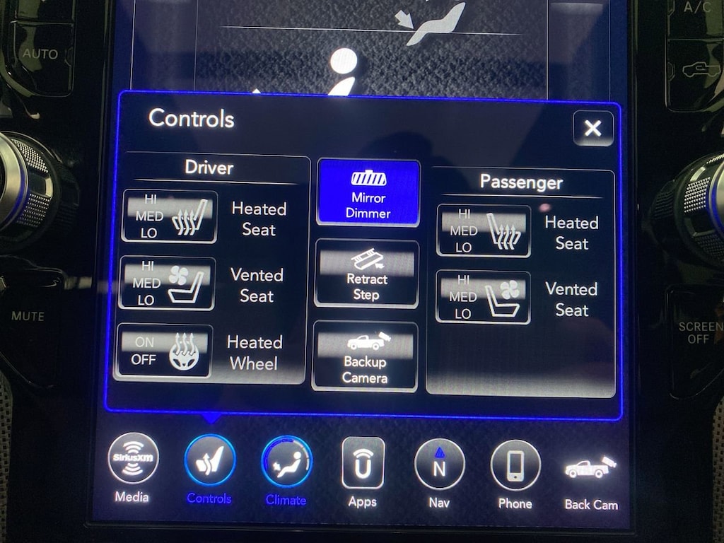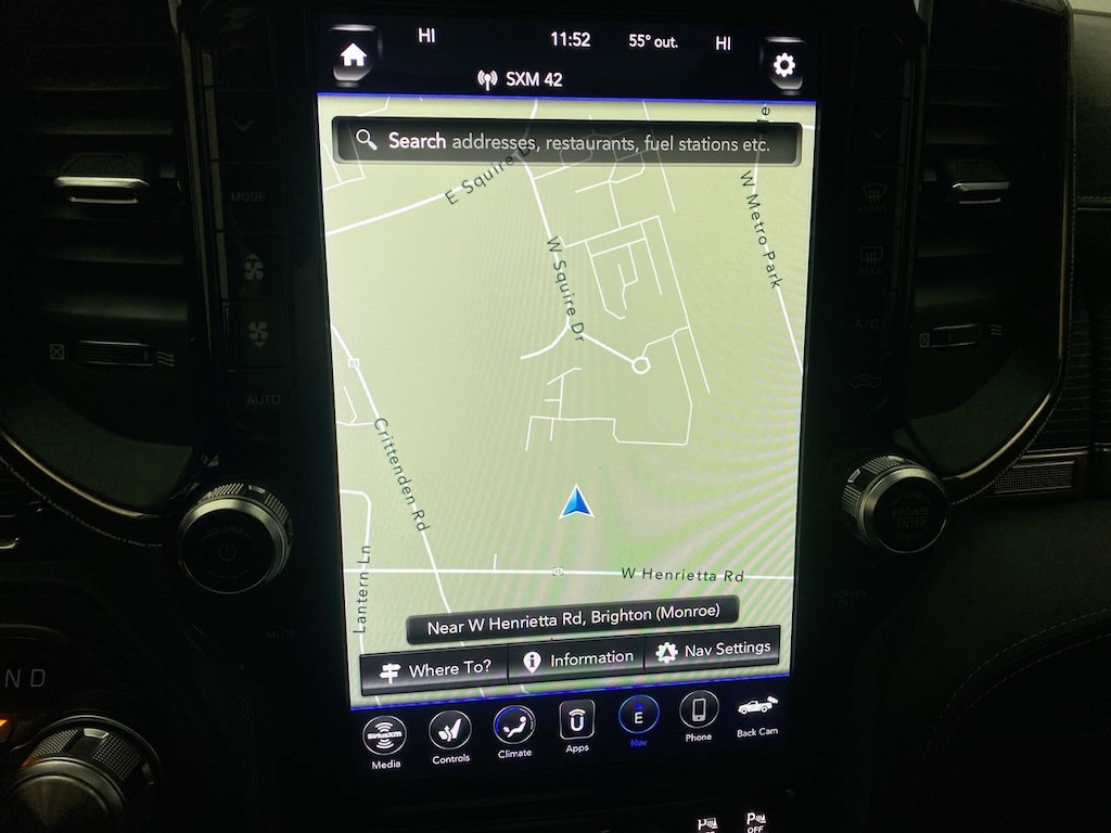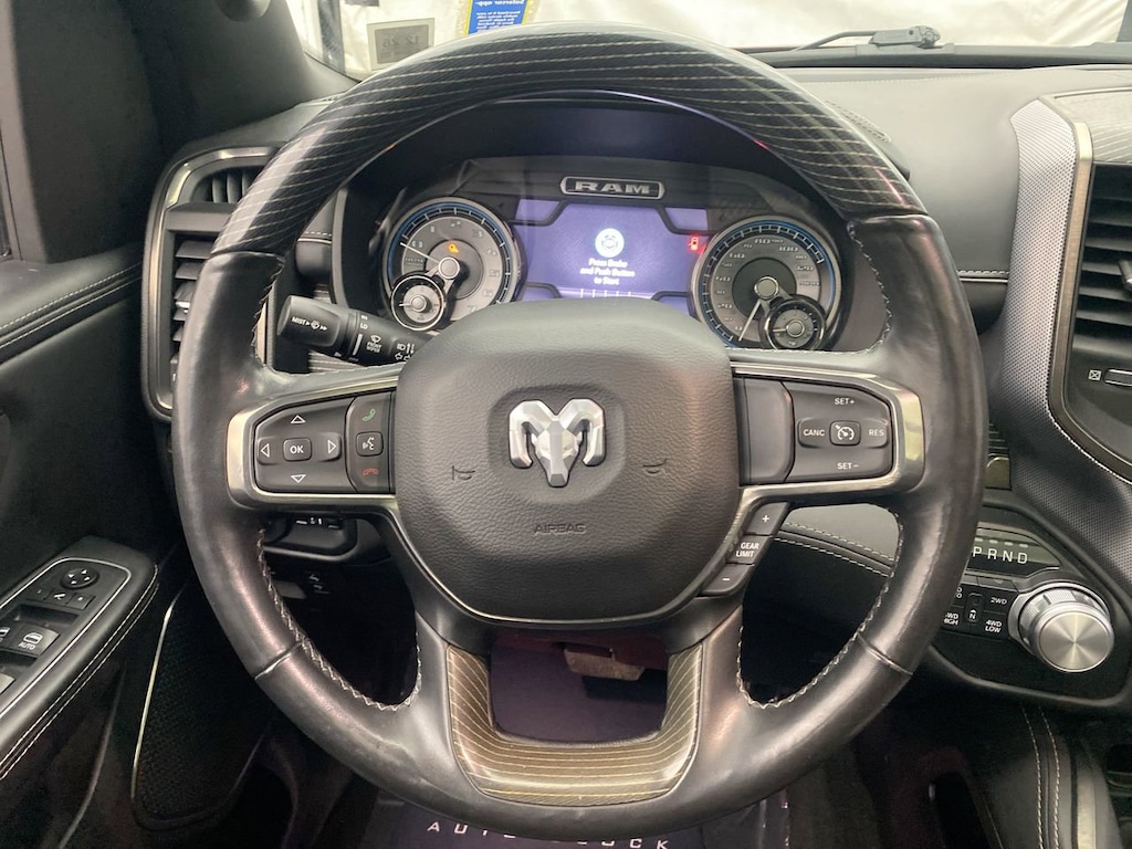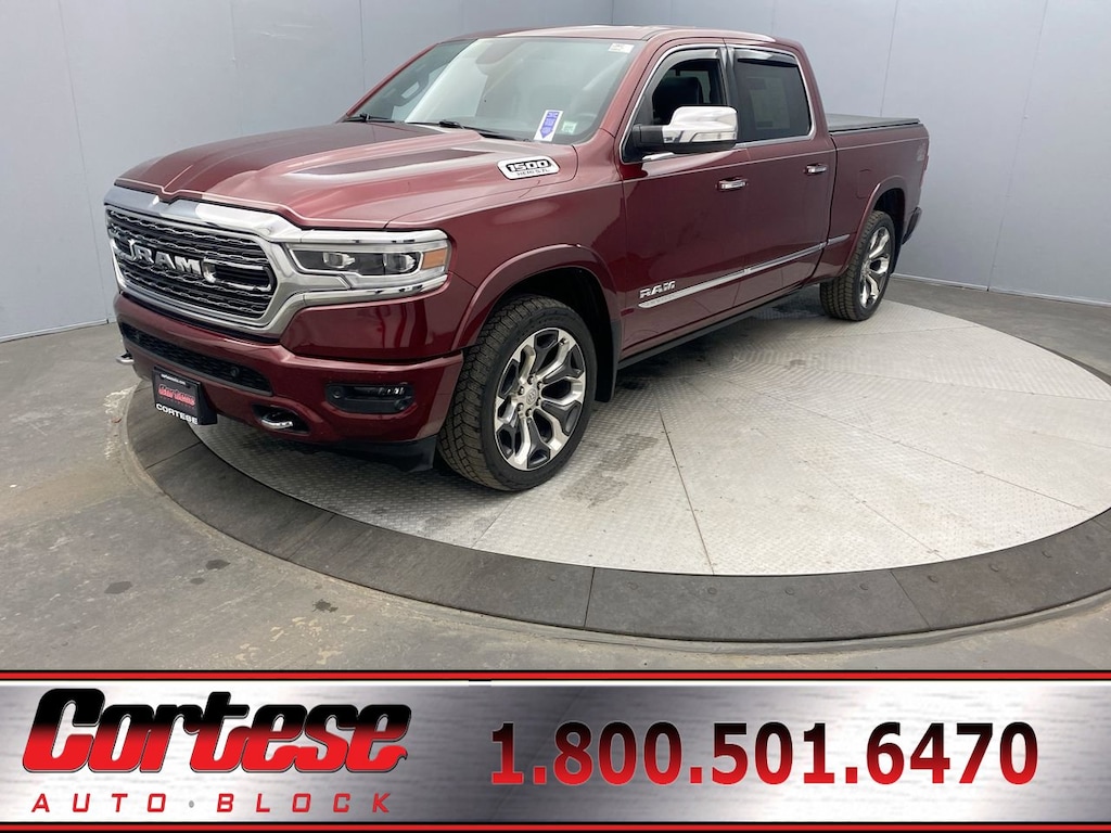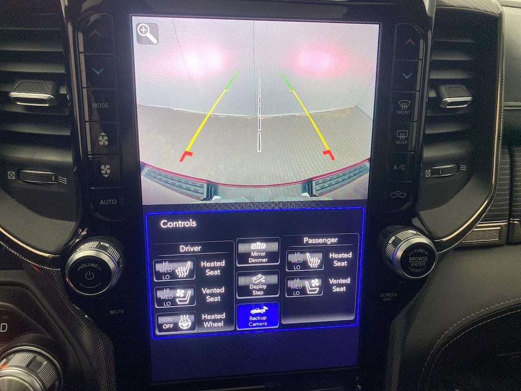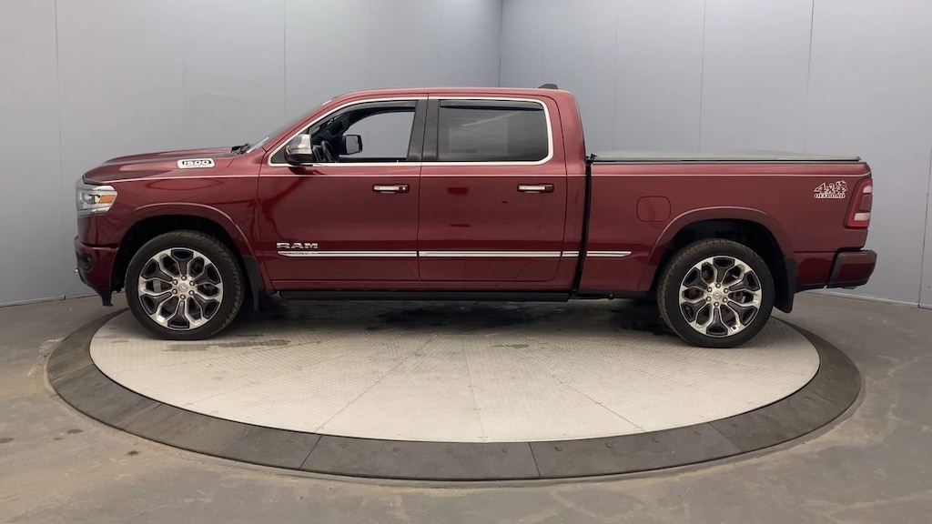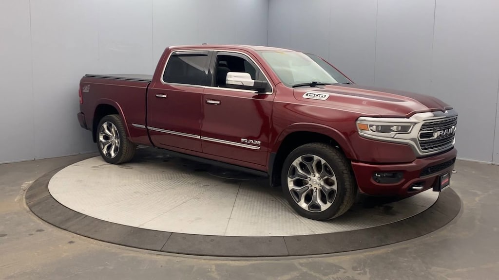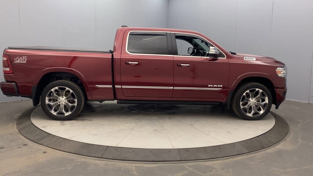 WHEELS: 22 X 9 POLISH/PAINTED W/INSERTS -inc: Tires: 285/45R22XL BSW All Season,DELMONICO RED PEARLCOAT,3.92 REAR AXLE RATIO,BLACK PREMIUM LEATHER TRIMMED BUCKET SEATS,PROTECTION GROUP -inc: Transfer Case Skid Plate Steering Gear Skid Plate Front Suspension Skid Plate Fuel Tank Skid Plate,BODY COLOR BUMPER GROUP -inc: Body Color Rear Bumper w/Step Pads Body Color Front Bumper,QUICK ORDER PACKAGE 25M LIMITED -inc: Engine: 5.7L V8 HEMI MDS VVT Transmission: 8-Speed Automatic (8HP75),GVWR: 7 100 LBS,TRI-FOLD TONNEAU COVER,DUAL-PANE PANORAMIC SUNROOF -inc: LED Dome/Reading Lamp Dome Dual LED Reading Lamp,TRANSMISSION: 8-SPEED AUTOMATIC (8HP75),33 GALLON FUEL TANK,ENGINE: 5.7L V8 HEMI MDS VVT -inc: Active Noise Control System Heavy Duty Engine Cooling GVWR: 7 100 lbs Dual Rear Exhaust w/Bright Tips Hemi Badge 220 Amp Alternator 600W Engine Cooling Fan,TIRES: 285/45R22XL BSW ALL SEASON,TRAILER BRAKE CONTROL,ANTI-SPIN DIFFERENTIAL REAR AXLE,Four Wheel Drive,Tow Hitch,Air Suspension,Power Steering,Air Suspension,Air Suspension,ABS,4-Wheel Disc Brakes,Brake Assist,Lithium Ion Traction Battery,Aluminum Wheels,Tires - Front Performance,Tires - Rear Performance,Bed Liner,Conventional Spare Tire,Tow Hooks,Heated Mirrors,Power Mirror(s),Integrated Turn Signal Mirrors,Power Folding Mirrors,Rear Defrost,Privacy Glass,Intermittent Wipers,Variable Speed Intermittent Wipers,Rain Sensing Wipers,Running Boards/Side Steps,Power Retractable Running Boards,Power Door Locks,Fog Lamps,Daytime Running Lights,Automatic Headlights,LED Headlights,Automatic Highbeams,AM/FM Stereo,Navigation System,Satellite Radio,Bluetooth Connection,HD Radio,Requires Subscription,Premium Sound System,MP3 Capability,Steering Wheel Audio Controls,Auxiliary Audio Input,Premium Sound System,Bluetooth Connection,Power Driver Seat,Power Passenger Seat,Mirror Memory,Driver Adjustable Lumbar,Seat Memory,Heated Front Seat(s),Cooled Front Seat(s),Power Driver Seat,Driver Adjustable Lumbar,Power Passenger Seat,Passenger Adjustable Lumbar,Pass-Through Rear Seat,Heated Rear Seat(s),Rear Bench Seat,Adjustable Steering Wheel,Trip Computer,Power Windows,WiFi Hotspot,Leather Steering Wheel,Heated Steering Wheel,Keyless Entry,Power Door Locks,Keyless Entry,Power Door Locks,Keyless Start,Universal Garage Door Opener,Cruise Control,Climate Control,Multi-Zone A/C,A/C,Woodgrain Interior Trim,Leather Seats,Bucket Seats,Auto-Dimming Rearview Mirror,Driver Vanity Mirror,Passenger Vanity Mirror,Driver Illuminated Vanity Mirror,Passenger Illuminated Visor Mirror,Floor Mats,Remote Engine Start,Smart Device Integration,Requires Subscription,Navigation System,Mirror Memory,Seat Memory,Remote Engine Start,Keyless Start,Smart Device Integration,Power Windows,Power Door Locks,Adjustable Pedals,Trip Computer,Immobilizer,Security System,Traction Control,Stability Control,Traction Control,Front Side Air Bag,Rear Parking Aid,Telematics,Requires Subscription,Blind Spot Monitor,Cross-Traffic Alert,Tire Pressure Monitor,Driver Air Bag,Passenger Air Bag,Front Head Air Bag,Rear Head Air Bag,Passenger Air Bag Sensor,Child Safety Locks,Back-Up Camera