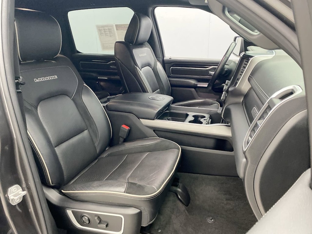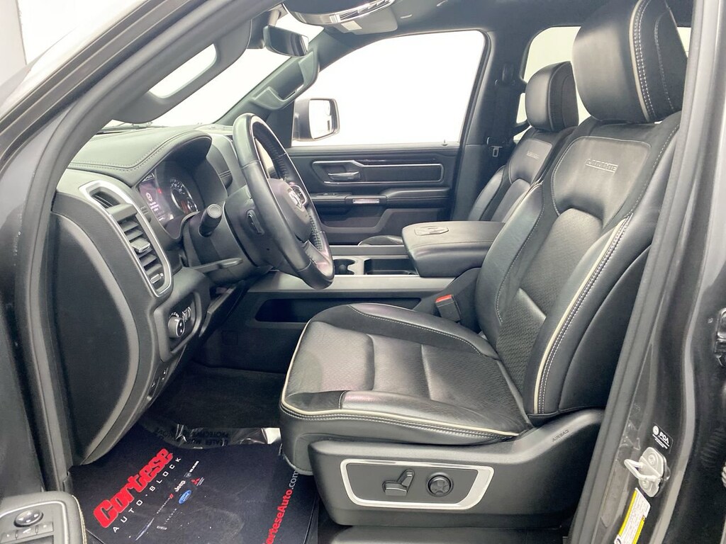 WHEELS: 20 X 9 PREMIUM PAINT/POLISHED -inc: Tires: 275/55R20 OWL All Season,MONOTONE PAINT,PARKSENSE FRONT/REAR PARK ASSIST W/STOP,REAR WHEELHOUSE LINERS,SPORT HOOD DELETE,MANUFACTURER'S STATEMENT OF ORIGIN,GVWR: 7 100 LBS,ENGINE: 5.7L V8 HEMI MDS VVT ETORQUE -inc: Active Noise Control System Heavy Duty Engine Cooling GVWR: 7 100 lbs Dual Rear Exhaust w/Bright Tips HEMI Badge 23 Gallon Fuel Tank 18 Aluminum Spare Wheel,TRANSMISSION: 8-SPEED AUTOMATIC (8HP75),QUICK ORDER PACKAGE 27H LARAMIE -inc: Engine: 5.7L V8 HEMI MDS VVT eTorque Transmission: 8-Speed Automatic (8HP75),TIRES: 275/55R20 OWL ALL SEASON,SPORT APPEARANCE PACKAGE -inc: Tires: 275/55R20 OWL All Season Body Color Exterior Mirrors Black Interior Accents Body Color Premium Power Mirrors Sport Performance Hood Body Color Front Bumper Sport Decal Body Color Door Handles Body Color Rear Bumper w/Step Pads Wheels: 20 x 9 Premium Painted w/Inserts Grille Surround 3 Body Color Tex 2 Black,BLACK LEATHER TRIMMED BUCKET SEATS -inc: Bucket Seats Center Console Parts Module Full Length Upgraded Floor Console,3.21 REAR AXLE RATIO (STD),FRONT LICENSE PLATE BRACKET,GRANITE CRYSTAL METALLIC CLEARCOAT,LARAMIE LEVEL 1 EQUIPMENT GROUP -inc: Remote Tailgate Release Auto High Beam Headlamp Control Blind Spot & Cross Path Detection Rain Sensitive Windshield Wipers ParkSense Front/Rear Park Assist w/Stop Tailgate Ajar Warning Lamp Foam Bottle Insert (Door Trim Panel) Rear 60/40 Folding Split Recline Seat Auto Dimming Exterior Passenger Mirror,Four Wheel Drive,Tow Hitch,Power Steering,ABS,4-Wheel Disc Brakes,Brake Assist,Lithium Ion Traction Battery,Aluminum Wheels,Conventional Spare Tire,Heated Mirrors,Power Mirror(s),Integrated Turn Signal Mirrors,Power Folding Mirrors,Rear Defrost,Privacy Glass,Intermittent Wipers,Variable Speed Intermittent Wipers,Power Door Locks,Daytime Running Lights,Automatic Headlights,LED Headlights,Fog Lamps,AM/FM Stereo,Satellite Radio,Bluetooth Connection,Requires Subscription,Premium Sound System,MP3 Capability,Steering Wheel Audio Controls,Auxiliary Audio Input,Premium Sound System,Satellite Radio,Requires Subscription,Heated Front Seat(s),Cooled Front Seat(s),Heated Front Seat(s),Seat Memory,Power Driver Seat,Power Passenger Seat,Pass-Through Rear Seat,Rear Bench Seat,Adjustable Steering Wheel,Trip Computer,Power Windows,Driver Adjustable Lumbar,Passenger Adjustable Lumbar,Leather Steering Wheel,Heated Steering Wheel,Keyless Entry,Power Door Locks,Keyless Entry,Power Door Locks,Keyless Start,Universal Garage Door Opener,Cruise Control,Climate Control,Multi-Zone A/C,A/C,Woodgrain Interior Trim,Leather Seats,Auto-Dimming Rearview Mirror,Driver Vanity Mirror,Passenger Vanity Mirror,Driver Illuminated Vanity Mirror,Passenger Illuminated Visor Mirror,Floor Mats,Remote Engine Start,Keyless Start,Mirror Memory,Smart Device Integration,Smart Device Integration,Bluetooth Connection,Power Windows,Power Door Locks,Adjustable Pedals,Trip Computer,Power Driver Seat,Mirror Memory,Immobilizer,Security System,Traction Control,Stability Control,Traction Control,Front Side Air Bag,Front Collision Mitigation,Tire Pressure Monitor,Driver Air Bag,Passenger Air Bag,Front Head Air Bag,Rear Head Air Bag,Passenger Air Bag Sensor,Child Safety Locks,Back-Up Camera
