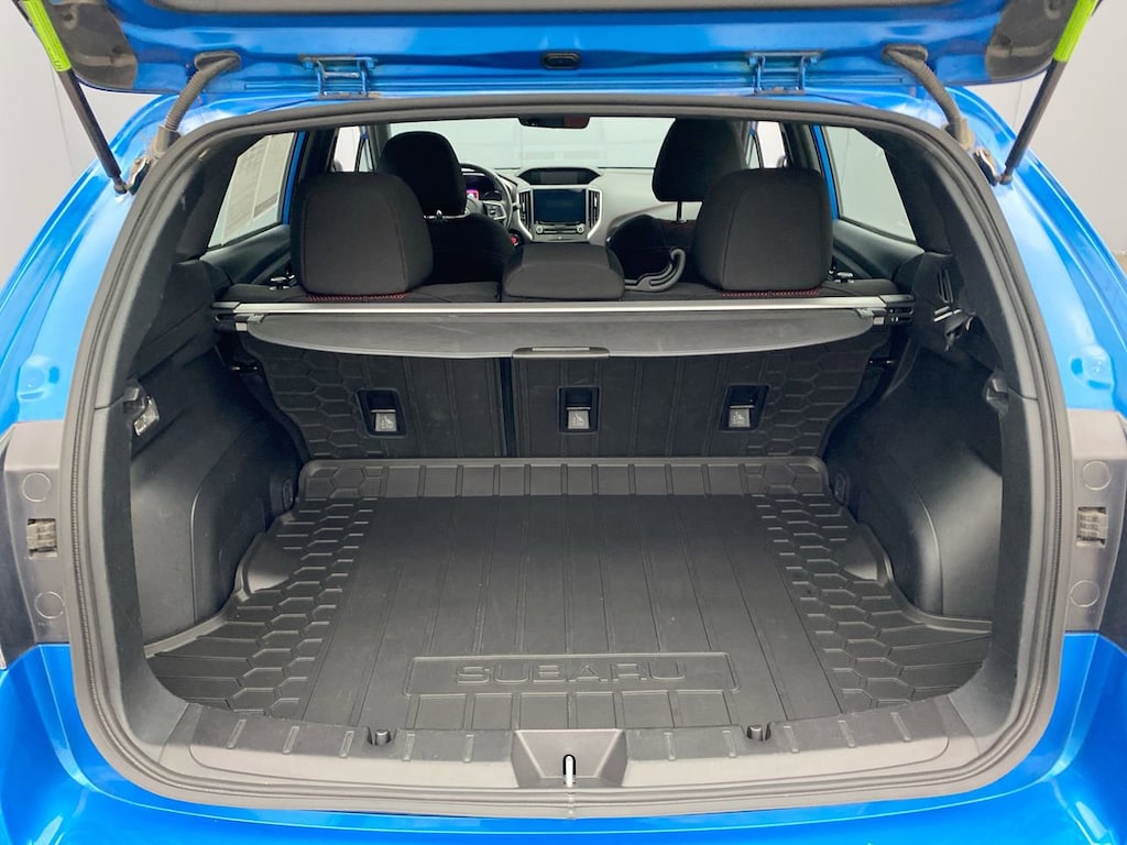 AERO SPLASH GUARDS -inc: Part number J101SFL300,AUTO-DIMMING MIRROR W/COMPASS -inc: Part number H501SSG203,OCEAN BLUE PEARL BODY SIDE MOLDING -inc: Part number J101SFL502T6,BLACK SPORT CLOTH UPHOLSTERY -inc: red stitching,REAR BUMPER APPLIQUE -inc: Part number E771SFL010,ALLOY WHEEL LOCKS -inc: Part number B321SFL000,MOONROOF & BSD/RCTA & HK AUDIO & POWER DRIVER SEAT -inc: liquid filled rubber engine mounts SI-drive engine performance management automatic transmission shift lever position indicator lock-up torque converter incline start assist active AWD w/electronically controlled variable transfer clutch gloss black w/silver metallic finish trim shift lever plate simulated leather w/red stitching shift lever boot paddle shift ratio position indicator advanced adaptive cruise control (system operation ready/off/on/set/coast/resume/accelerate/cancel/follow distance) eyesight camera malfunction warning follow distance setting indicator hold indicator lane departure and lane sway indicator/warning off switch lane departure prevention lead vehicle start alert pre-collision (warning indicator following distance warning indicator braking system braking system off switch brake assist) set vehicle speed display lane keep assist (steering wheel/cancellation indicator/on-off switch),CARGO TRAY -inc: Part number J501SFL301,OCEAN BLUE PEARL,OCEAN BLUE PEARL DOOR EDGE GUARDS -inc: Part number SOA801P030T6,REAR SEATBACK PROTECTOR -inc: Part number J505SFL403,ALL-WEATHER FLOOR LINERS -inc: Part number J501SFL110,CARGO NET -inc: Part number F551SFL000,All Wheel Drive,Power Steering,ABS,4-Wheel Disc Brakes,Brake Assist,Brake Actuated Limited Slip Differential,Aluminum Wheels,Tires - Front Performance,Tires - Rear Performance,Temporary Spare Tire,Heated Mirrors,Power Mirror(s),Integrated Turn Signal Mirrors,Rear Defrost,Intermittent Wipers,Variable Speed Intermittent Wipers,Rear Spoiler,Power Door Locks,Daytime Running Lights,Automatic Headlights,AM/FM Stereo,CD Player,Satellite Radio,MP3 Capability,Bluetooth Connection,Telematics,Back-Up Camera,Auxiliary Audio Input,HD Radio,Smart Device Integration,Requires Subscription,MP3 Capability,Steering Wheel Audio Controls,Bluetooth Connection,Bucket Seats,Heated Front Seat(s),Pass-Through Rear Seat,Rear Bench Seat,Adjustable Steering Wheel,Trip Computer,Power Windows,Telematics,Requires Subscription,Leather Steering Wheel,Keyless Entry,Power Door Locks,Remote Trunk Release,Keyless Entry,Power Door Locks,Keyless Start,Cruise Control,A/C,Cloth Seats,Driver Vanity Mirror,Passenger Vanity Mirror,Driver Illuminated Vanity Mirror,Passenger Illuminated Visor Mirror,Floor Mats,Cargo Shade,Keyless Start,Smart Device Integration,Power Windows,Power Door Locks,Trip Computer,Security System,Immobilizer,Traction Control,Stability Control,Traction Control,Front Side Air Bag,Telematics,Requires Subscription,Tire Pressure Monitor,Driver Air Bag,Passenger Air Bag,Front Head Air Bag,Rear Head Air Bag,Passenger Air Bag Sensor,Knee Air Bag,Child Safety Locks,Back-Up Camera