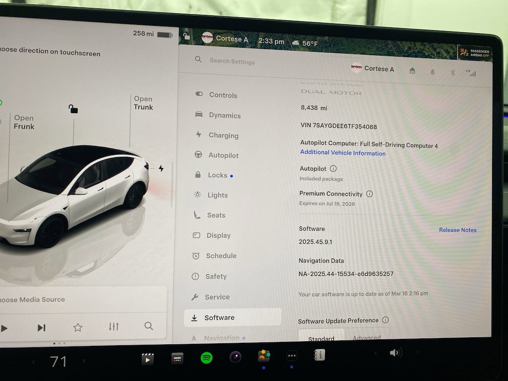 Electric Motor,All Wheel Drive,Power Steering,ABS,4-Wheel Disc Brakes,Brake Assist,Lithium Ion Traction Battery,Aluminum Wheels,Wheel Covers,Tires - Front Performance,Tires - Rear Performance,Wheel Covers,Sun/Moonroof,Generic Sun/Moonroof,Panoramic Roof,Heated Mirrors,Power Mirror(s),Power Folding Mirrors,Rear Defrost,Privacy Glass,Intermittent Wipers,Variable Speed Intermittent Wipers,Rain Sensing Wipers,Remote Trunk Release,Power Liftgate,Power Door Locks,Daytime Running Lights,Automatic Headlights,Headlights-Auto-Leveling,LED Headlights,Automatic Highbeams,AM/FM Stereo,MP3 Capability,Auxiliary Audio Input,HD Radio,MP3 Capability,Steering Wheel Audio Controls,Rear Seat Audio Controls,Hard Disk Drive Media Storage,Bluetooth Connection,Entertainment System,Power Driver Seat,Power Passenger Seat,Bucket Seats,Heated Front Seat(s),Driver Adjustable Lumbar,Cooled Front Seat(s),Power Driver Seat,Power Passenger Seat,Bucket Seats,Mirror Memory,Driver Adjustable Lumbar,Seat Memory,Heated Front Seat(s),Cooled Front Seat(s),Power Driver Seat,Driver Adjustable Lumbar,Power Passenger Seat,Pass-Through Rear Seat,Heated Rear Seat(s),Rear Bench Seat,Adjustable Steering Wheel,Trip Computer,Power Windows,Telematics,Requires Subscription,Heated Steering Wheel,Keyless Entry,Power Door Locks,Keyless Start,Keyless Entry,Power Door Locks,Remote Trunk Release,Hands-Free Liftgate,Cruise Control,Adaptive Cruise Control,Climate Control,Multi-Zone A/C,A/C,A/C,Rear A/C,Premium Synthetic Seats,Auto-Dimming Rearview Mirror,Driver Vanity Mirror,Passenger Vanity Mirror,Driver Illuminated Vanity Mirror,Passenger Illuminated Visor Mirror,Floor Mats,Cargo Shade,Mirror Memory,Seat Memory,Keyless Start,Navigation System,Smart Device Integration,Power Windows,Power Door Locks,Trip Computer,Immobilizer,Traction Control,Stability Control,Traction Control,Front Side Air Bag,Telematics,Requires Subscription,Blind Spot Monitor,Cross-Traffic Alert,Lane Departure Warning,Lane Keeping Assist,Lane Departure Warning,Front Collision Mitigation,Driver Monitoring,Rear Parking Aid,Back-Up Camera,Tire Pressure Monitor,Driver Air Bag,Passenger Air Bag,Front Head Air Bag,Rear Head Air Bag,Passenger Air Bag Sensor,Driver Restriction Features,Child Safety Locks,Back-Up Camera